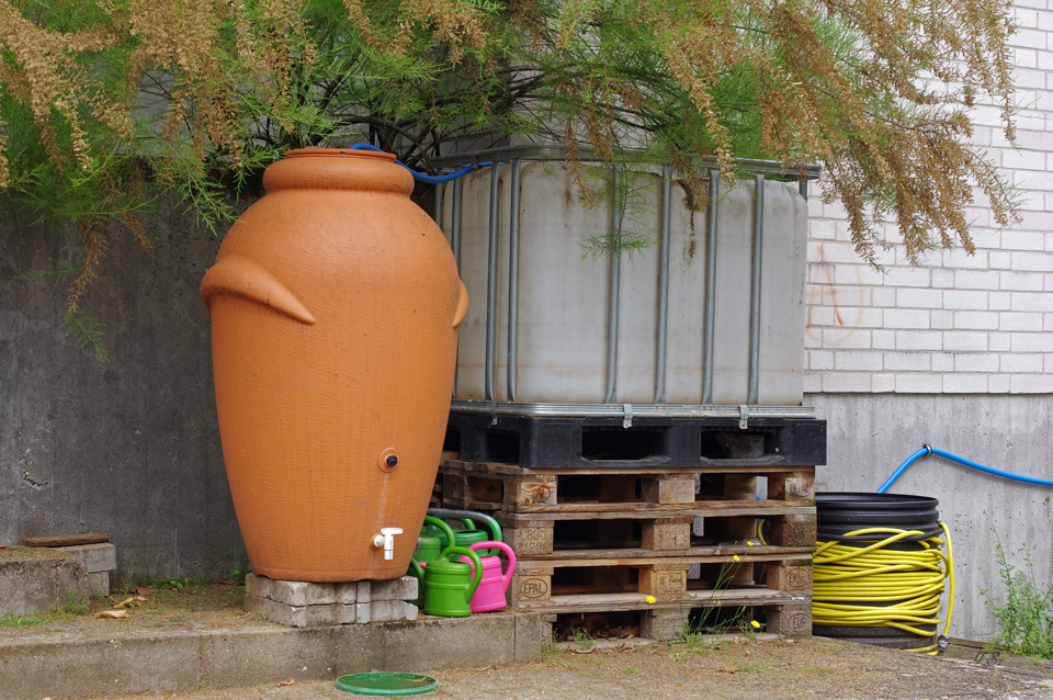 angeschafften Regenwassersammeltonne entnehmen, die nach Bedarf auch mit